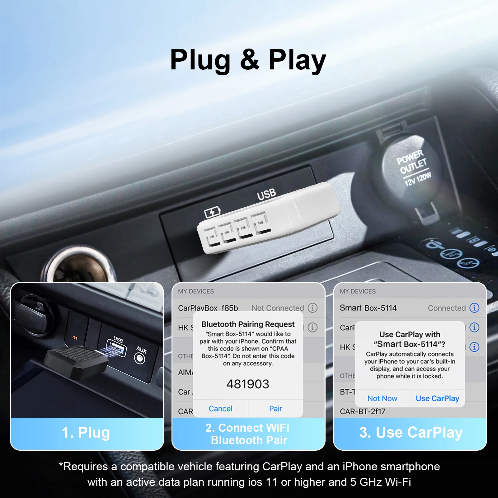2. Wireless CarPlay, Convert factory wired CarPlay to wireless, Support Siri,GPS Navigation and so on.